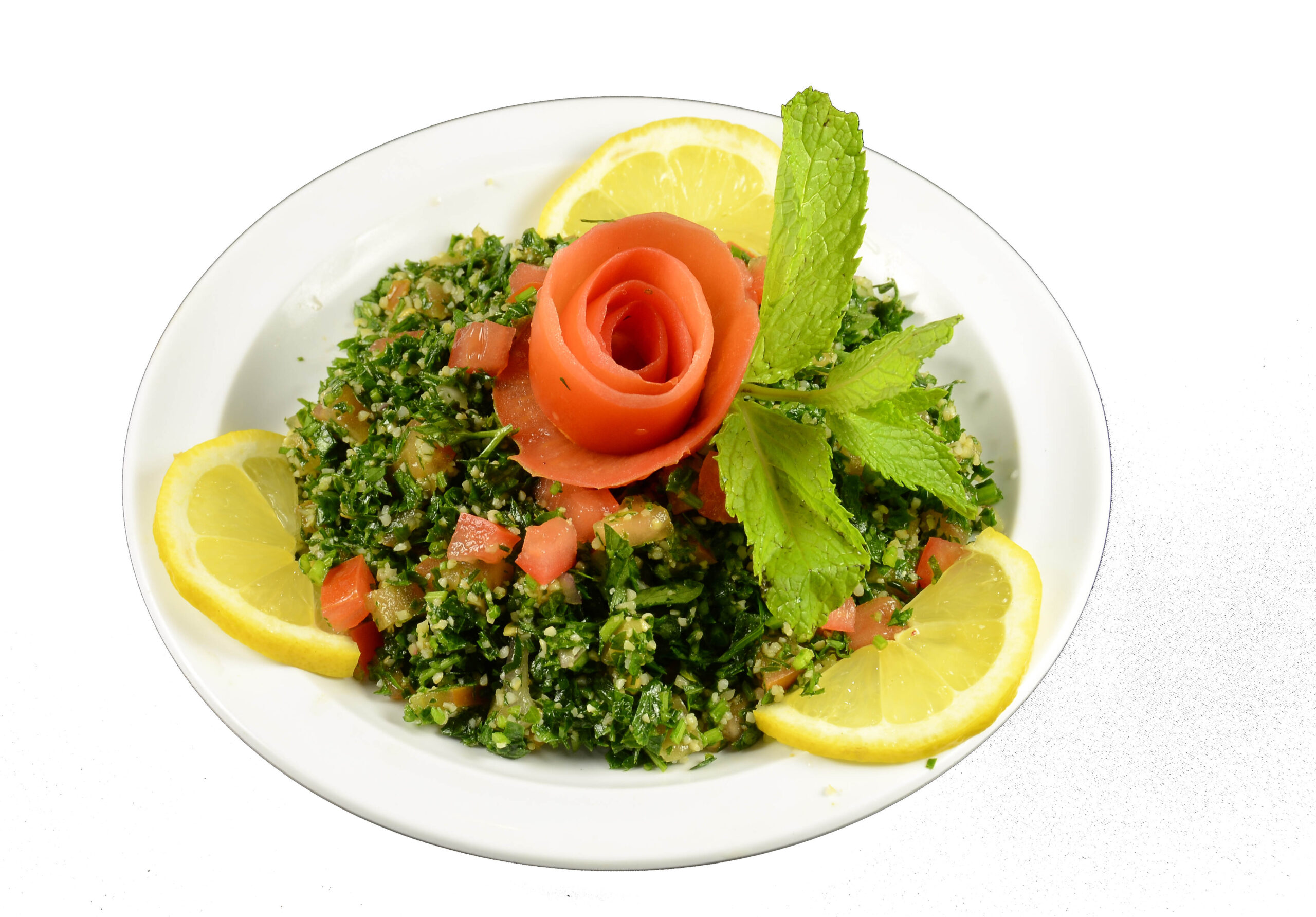 Minced parsley, tomatoes, onions, borghoul tossed with olive oil and lemon juice.